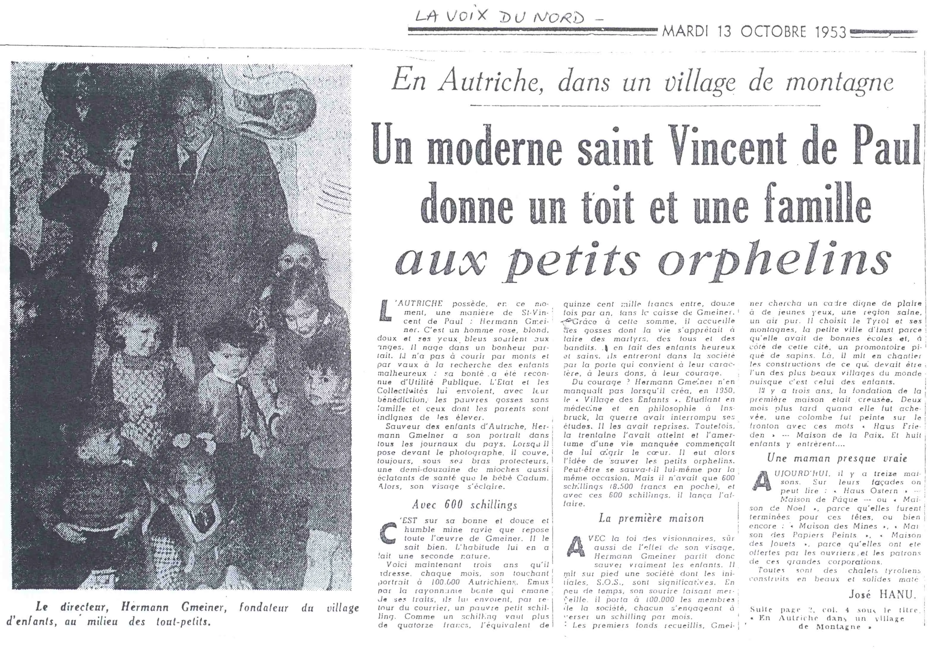 Concours de circonstances, quelques jours plus tard, il lit dans La Voix du Nord un article sur le premier village d’enfants SOS fondé en Autriche par Hermann Gmeiner. Touché par cette initiative qui a pour vocation de réunir les fratries orphelines de guerre, il sent qu’il tient là une piste à explorer. À seulement 22 ans, Gilbert Cotteau se rend en Autriche pour découvrir ce village et rencontrer les mères SOS qui y travaillent. Il en revient convaincu : il faut créer la même chose en France.